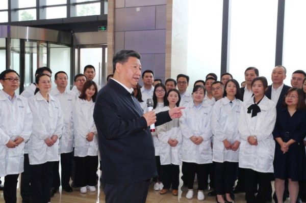 在武汉新芯集成电路制造有限公司,习近平听取了国家存储器基地项目情况介绍,并到生产车间察看国内领先的集成电路生产线。以该公司为平台组建的长江存储科技有限责任公司是国家存储器基地项目的实施主体,承担着我国存储器跨越式发展、赶超世界一流的重要使命。在生产车间,总书记仔细察看集成电路生产线,听取有关芯片全流程智能化制造和加快国产化进程情况介绍。他强调,装备制造业的芯片,相当于人的心脏。心脏不强,体量再大也不算强。要加快在芯片技术上实现重大突破,勇攀世界半导体存储科技高峰。“两个一百年”奋斗目标不是敲锣打鼓、轻轻松松就能实现的。机遇前所未有,挑战前所未有。每个人都要增强责任感、使命感,在各自岗位上为中华民族伟大复兴作出更大贡献。
