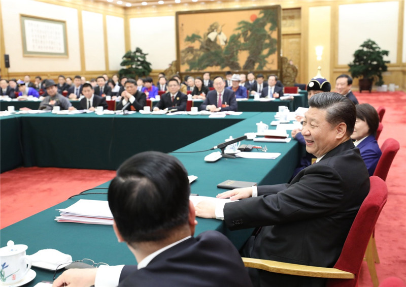 3月5日,中共中央总书记、国家主席、中央军委主席习近平参加十三届全国人大一次会议内蒙古代表团的审议。
