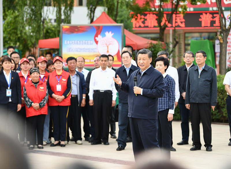 6月8日至10日,中共中央总书记、国家主席、中央军委主席习近平在宁夏考察。这是6月8日下午,习近平在吴忠市利通区金花园社区广场,同居民们亲切交流。