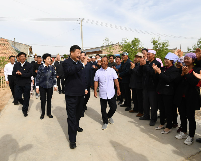 6月8日至10日,中共中央总书记、国家主席、中央军委主席习近平在宁夏考察。这是6月8日下午,习近平在吴忠市红寺堡区红寺堡镇弘德村看望移民搬迁群众,向村民们挥手致意。