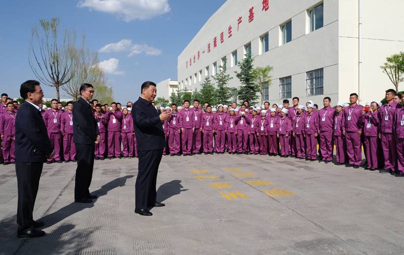 6月7日至9日,中共中央总书记、国家主席、中央军委主席习近平在青海考察。这是7日下午,习近平在青海圣源地毯集团有限公司生产车间考察。新华社记者 谢环驰 摄