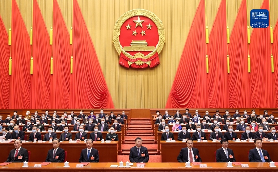 习近平、李克强、汪洋、王沪宁、赵乐际、韩正、王岐山和大会主席团成员在主席台就座。