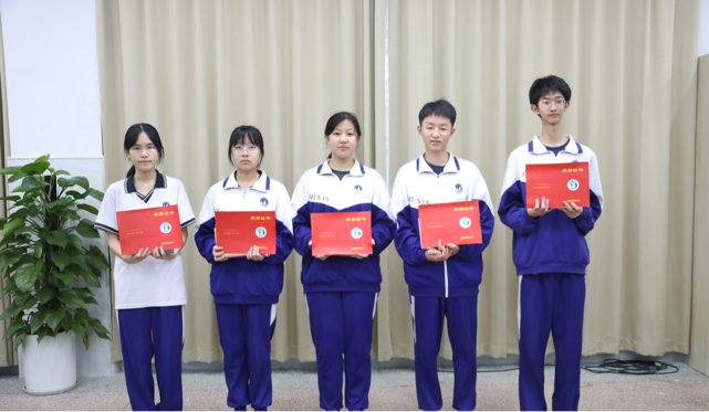 大赛特等奖获得者G2201任玮宗、G2202滕悦梦、G2207陈思斯、G2211陶思瑶、G2311肖梦媛五位同学被评选为地中文学之星用文字编织梦想,用故事传递力量。